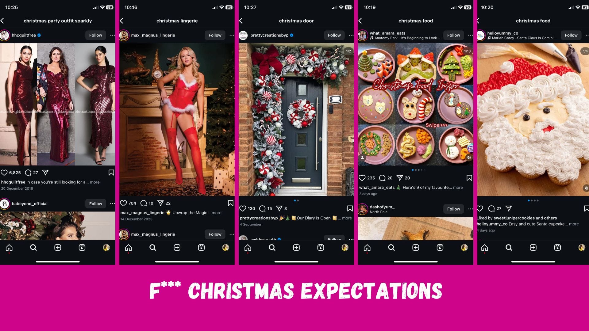 Plus, social media gives our mum guilt a festive glow up when our home, bodies, and gifts don’t look as good as everybody else’s. If you’re reading this and your home doesn’t look like a Boujis hotel lobby, you don’t fancy squeezing into a sexy santa costume and you’re buying your gifts from Vinted, you are not alone.