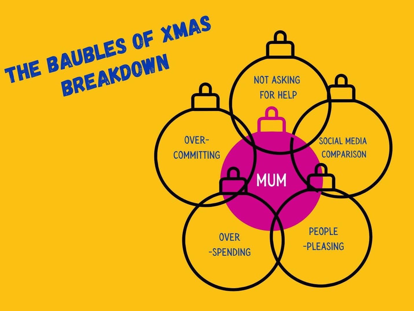 Last year, during the F*** Mum Guilt Christmas special, I shared something I called The Baubles of Christmas Breakdown. Think of it as a Venn diagram of Mama’s Gonna Blow.